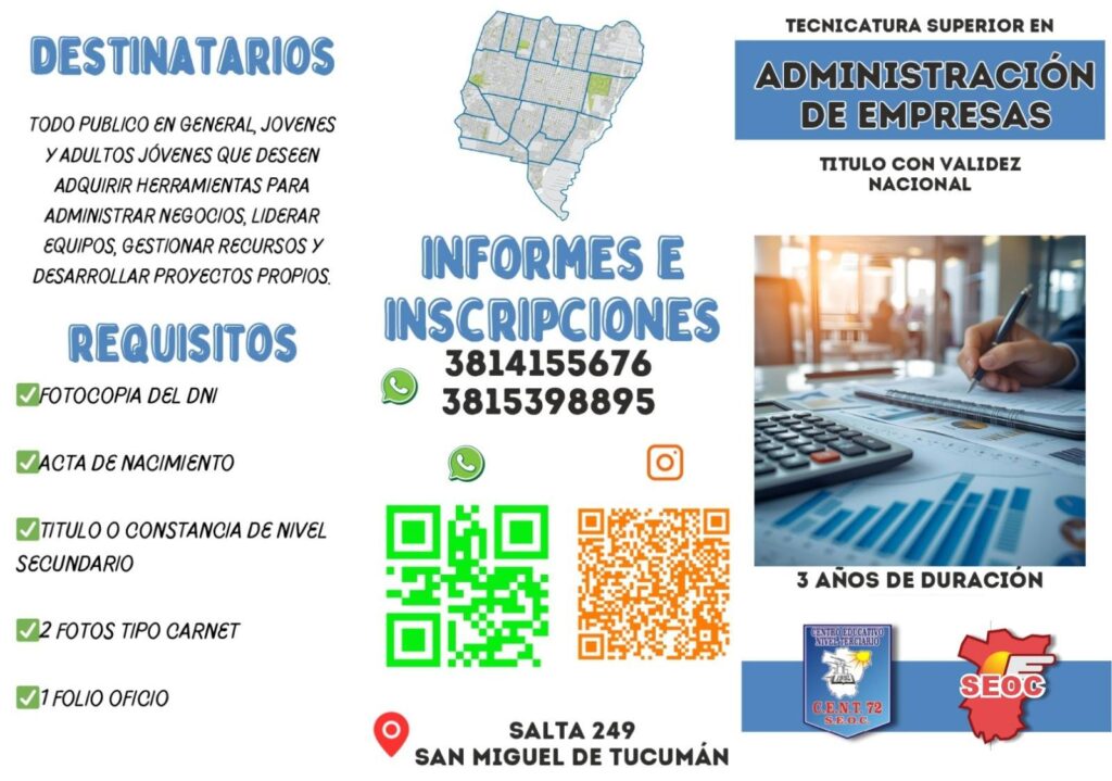 Inscripciones abiertas para la Tecnicatura Superior en Administración de Empresas.