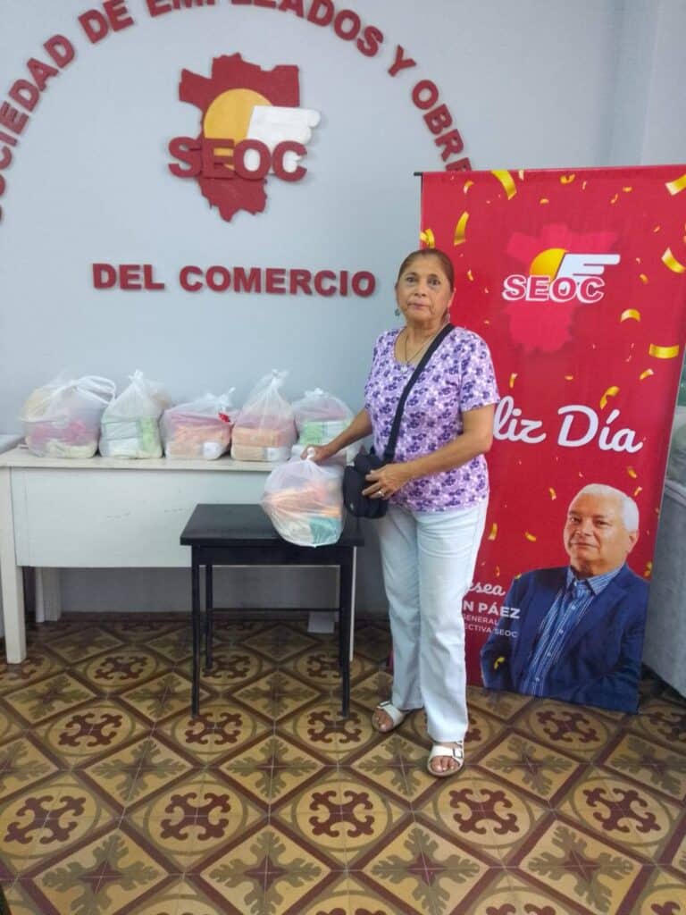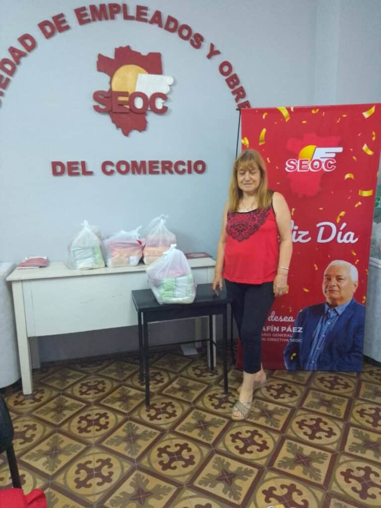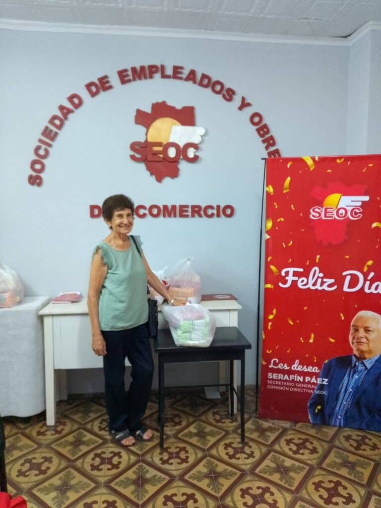 En la sede de SEOC, ubicada en calle Congreso 243, se realizó la entrega de bolsones con mercadería a los jubilados y jubiladas del comercio.